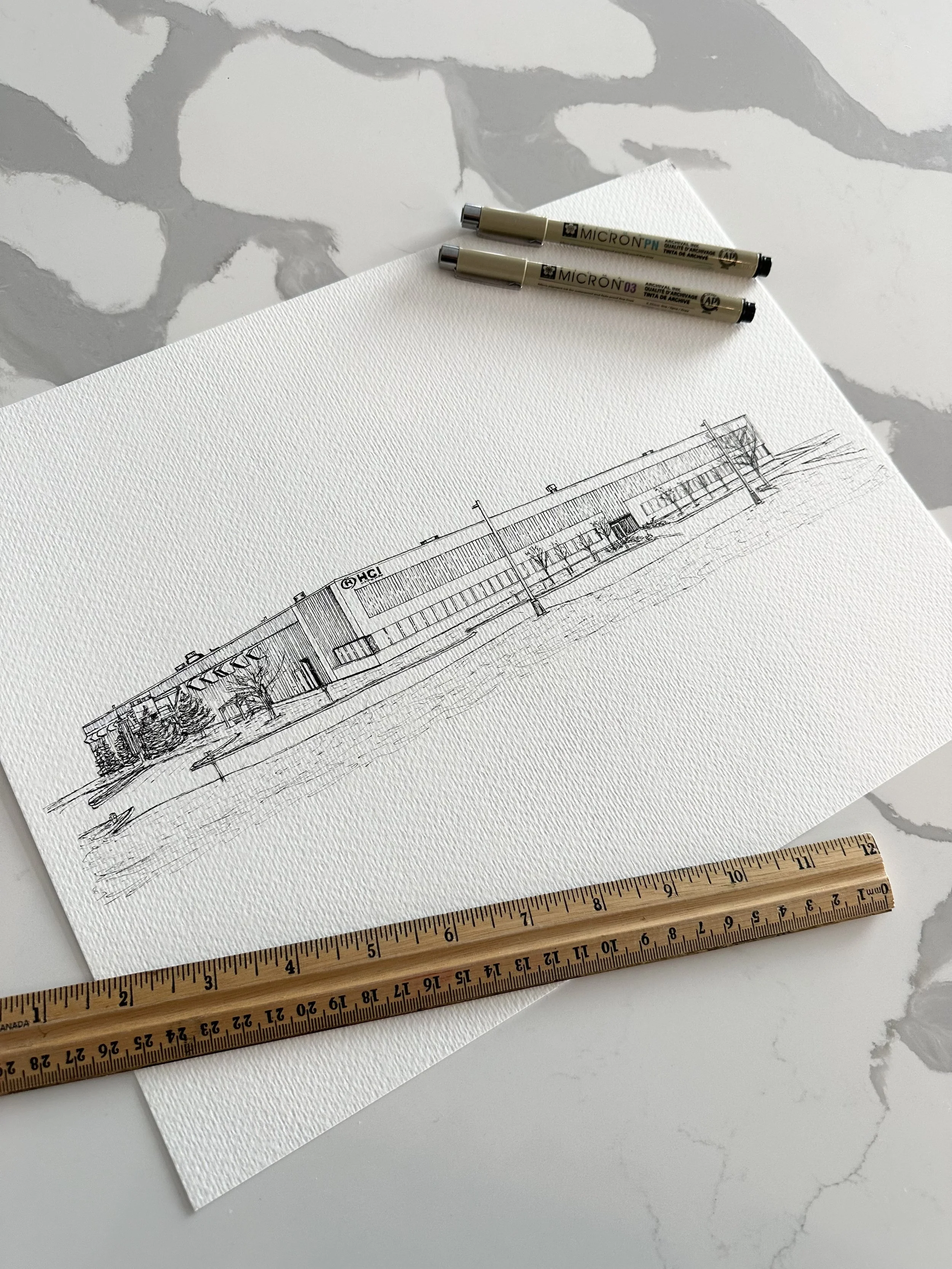DANA’s custom acrylic paintings or pen drawings of your cherished building of choice, is meticulously designed to serve as a timeless keepsake. Each piece is a harmonious fusion of creativity and artistry, offering a distinctive aesthetic that honours your home, building or business.